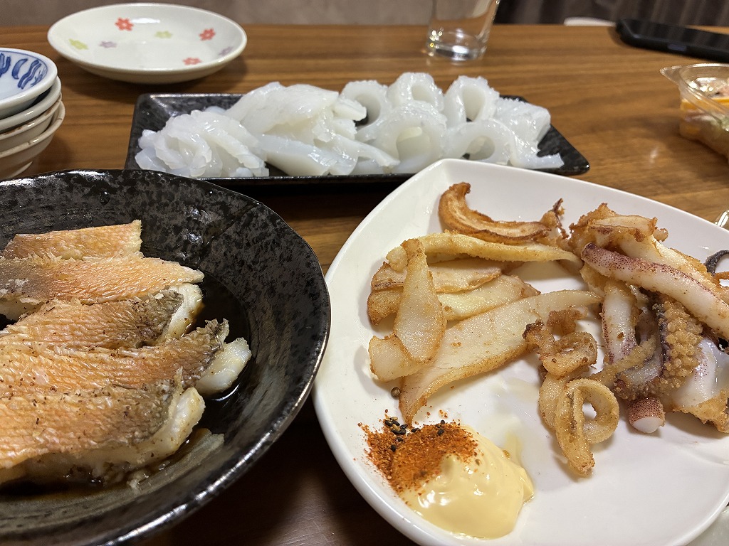イカは超うまかった。シロアマダイもだいぶ上手に料理できるようになってきた。