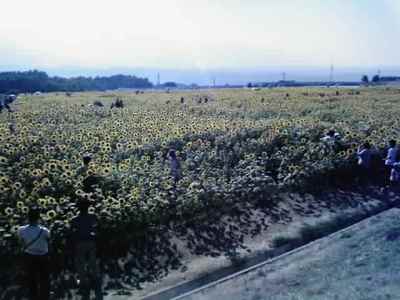 サンフラワーフェスタメイン会場で車をとめて、ひまわり畑をお散歩。ものすごい数のひまわりが咲いています。畑ごとに開花時期をずらしてあるのでまだ当分楽しめそう。とってもきれいで楽しいお花畑でした。ぜひとも好きな人と行ってみて下さい。