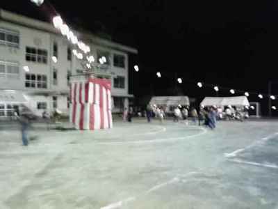会場が小学校なので、ウンテイの上で飲みながら盆踊を見る。子供たちがものすごくいっぱい寄ってくる。太鼓を叩いている人の子供たち(5人兄弟)と仲良くなる。小さな学校なので複式学級だそうで。全校生徒24人のうち、5人が同じ兄弟。