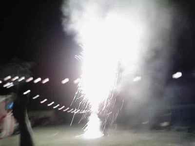 打ち上げ花火も上がる。玉数は本当に少ないのだが、目の前であがるので下手な花火大会よりきれい。手筒花火も見れました。手筒花火師、かっこいいね。
