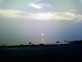長浜キャンプ場からの夕日。とてもきれいですが携帯の性能のせいで・・・。