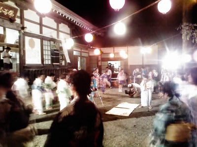 さて盆踊り。小さな集落にある立派なお寺の境内で行われます。みんなで丸くなって静かに歌いながらの踊りは、一般的な「**音頭」とは違います。