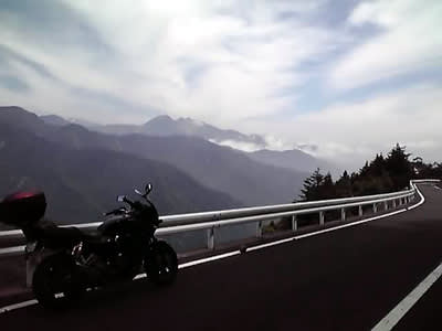 土曜日…バイクで走りたい。地図を見て出発。井川の上にある「山伏峠(やんぶしとうげ)」を抜けて山梨県早川町に。この峠は2000メートル近くあるので雲の上です。大きいバイクで行くとちょっと大変。一応ほぼ舗装道路。