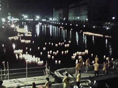 タロウと清水の燈篭流しへ。今年はちょっと規模が小さいけど、その分静かに流れる燈篭が素敵です。
