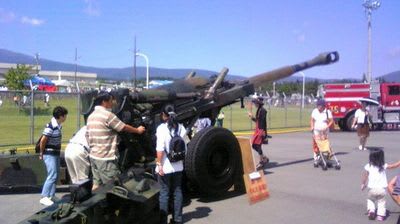 上の広場では自衛隊が装備品の展示。