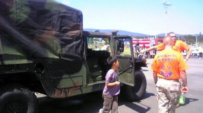 自衛隊の展示では見るだけなのですが、こちらは自由の国アメリカなので触り放題乗り放題。