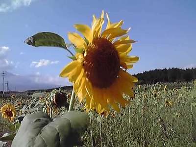 基地を出て裾野のひまわりを見に行く。ちょっと遅かったようですが元気のいいのを少々撮影。