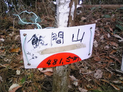谷川峠との分岐(ここが駿河区最西端)を飯間山方面へ。展望があるとされていた鉄塔下も眺めはよろしくない。10:45飯間山山頂(481.5)。ここが駿河区で最も高い場所。しかし展望はなし。