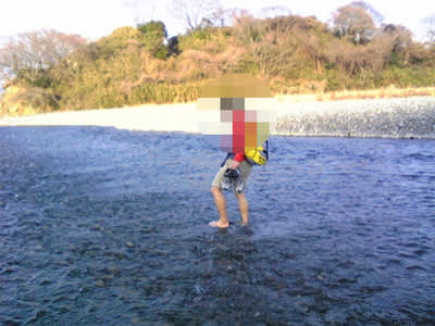 体はクタクタなのですが、大変残念なことに駿河区の区境は安倍川に浮かんでいる船山の三角点が基準。2月の冷たい水の中を安倍川を歩いて渡る。無事船山三角点へ。ここが駿河区最北端。もう一度安倍川を歩いて渡る。ものすごく冷たくて足が激痛。