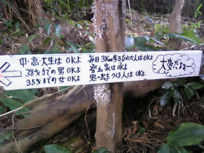とりあえずお昼ご飯+昼寝。場所を確認したら大鈩不動尊北部らしい。尾根をひとつ間違えている。来た道を戻る。登りきってすぐに分岐の看板があった。登山道の真ん中を通らなかったので二人ともまったく気が付いていないのでした。
