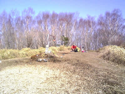 11:30に1726mの頂上に到着。なかなか展望がすばらしい。南には竜爪、真富士、青笹の安倍山系が並んで見える。東には富士山、北には南アルプス。携帯ではまともに写らないと思って撮影しませんでしたので各自見に行ってください。