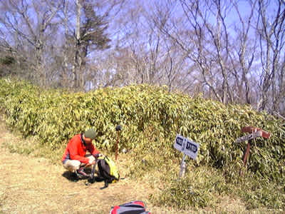 何とか11:50に峠に到着。尾根沿いの道は結構な風で寒い。上着を着る。十枚山山頂へ向かう。