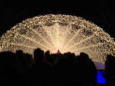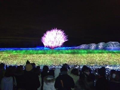 無料のシャトルバスで「なばなの里」へ。今回の目的、イルミネーションを見に行きます。バスで20分くらいで到着。会場まで結構歩く。入場料2000円ですが1000円分の金券をもらえますのでそんなに高くない。かなりの人混みの中進んでいきます。メイン会場の光のショーはかなりの見ごたえ。イルミネーションというより光のショーなのです。お土産を買ってシャトルバスで戻る。