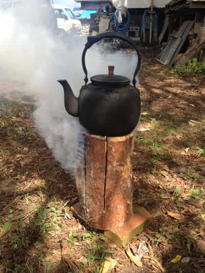 山小屋についてとりあえずちょっと前にネットで見た「丸太ストーブ」を作る。