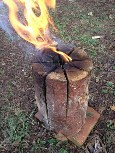 さらに四本切れ目を入れて八等分に。今回はとてもよく燃える。