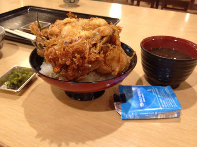 お昼ごはんはかき揚げ丼500円。遅い時間だったので軽く済ませるはずがすばらしいボリューム。