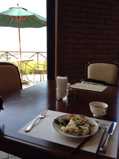 笛吹川沿いに勝沼方面に進んでワイナリーで工場見学とお食事。普段は結婚式場になっているおしゃれレストラン。