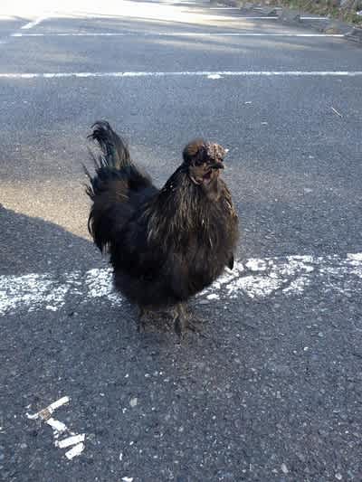 日本平清水パークの駐車場にいた黒ニワトリ。ものすごい人懐っこい。
