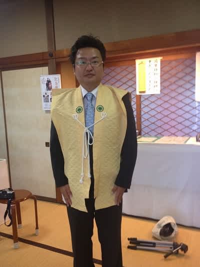 浅間神社へ。変な服を着せられる。お宮参りをして祝詞をあげてもらって神楽をしてもらう。