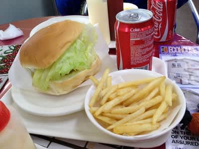 お昼ごはんはブラジルフレッシュのハンバーガー