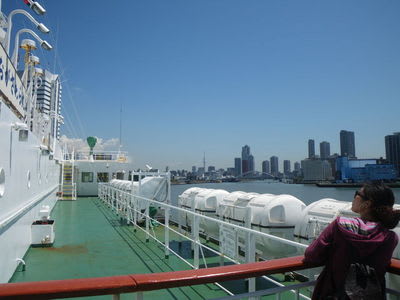 快晴のなか、10時に予定通り乗船。船の中をあちこち見て回るとすぐに出港。東京湾の中、見知った景色を見ながら進んでいきます。