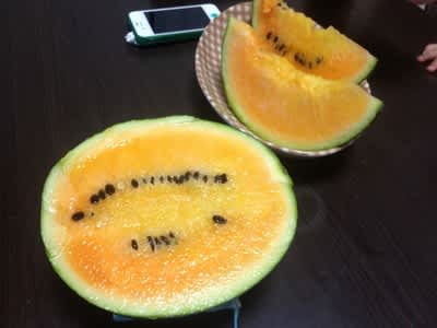 開けてびっくり黄色いスイカ。そういえばそういう品種だったのをすっかり忘れてた