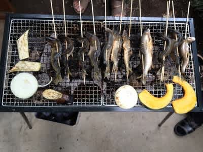 8月17日は法事です 法事ですが主な内容はBBQです 鮎いっぱい食べた