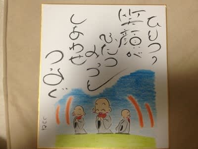30分ほど走って富士川楽座へ。二日も食べていないというのでごはんでもごちそうすると言ったのですが遠慮される。ならばその絵を一枚買うから見せなさいということで、素敵な言葉とかわいいお地蔵様の絵が描いてある色紙を3000円で買う。