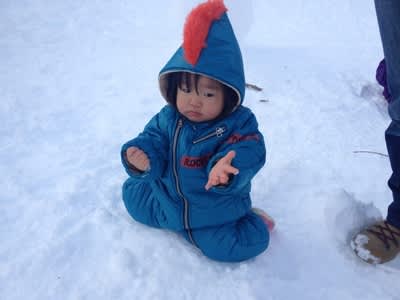 思ったより積雪がある。お昼ご飯を食べて子供ゲレンデへ