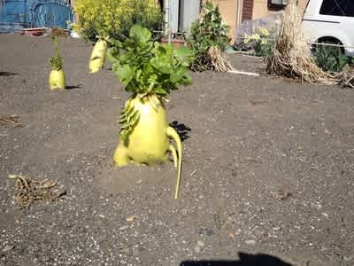 先日現場の横で見つけた大根