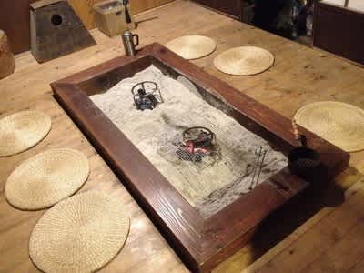 すっかり暗くなるまで外で呑んでしまったのですが、ここは囲炉裏がある。ぜひとも囲炉裏を囲んでみたい。21時くらいから囲炉裏に移動。夜中まで飲み続ける。