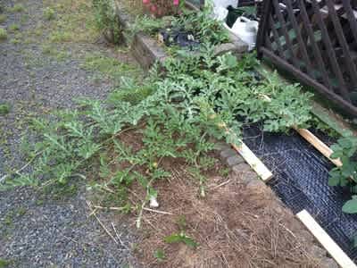 スイカと枝豆。枝豆はだいぶ実がなってきた。