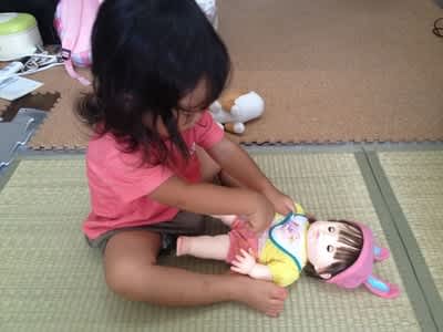 食後にプールに入ってお風呂に入って娘さんを昼寝させようとしたものの寝る気配がない。