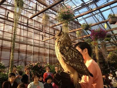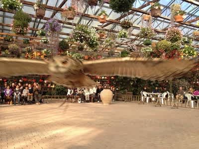 朝霧の富士の花鳥園へ。入場料1100円。さっそく最前列でショーを見学。結構間近でフクロウなどが見られます。