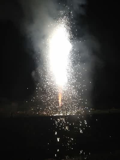 夕方から新間一色の花火へ。全然知らなかったんですが、藁科の新間一色という場所で手筒花火の奉納があります。ずいぶんと奥まったところなんですが、かなりの手筒花火を上げてくれてとてもきれい。