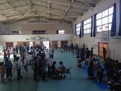 学区の小学校の「親子ふれあい広場」に伺う。親子で体育館でのゲームなどに参加してよいというイベントだと思う。竹とんぼを作ったりいろいろ。