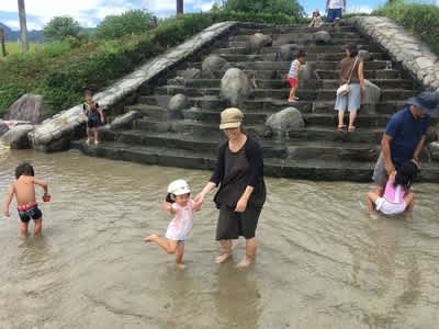川をせき止めてプールを作る。しかしせき止めるほうが楽しくなってやめられない。水深20cm増やした。