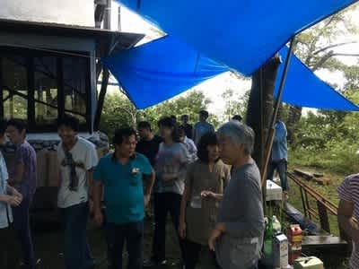 08時にのんびり出発。昼前に到着していろいろ準備。お経をあげてお肉を食べてお酒をいっぱい飲むのです。