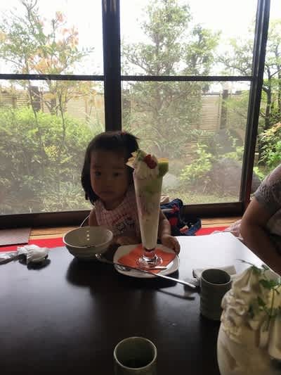 のんびり昼下がりを過ごしていたらお友達が菊川までパフェを食べに行くと嫁と娘を誘拐に来たので一緒に行く。