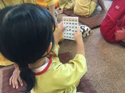 子供向けビンゴ大会が行われたのですが、ほぼすべてカードが空いてもなかなか当たらない。