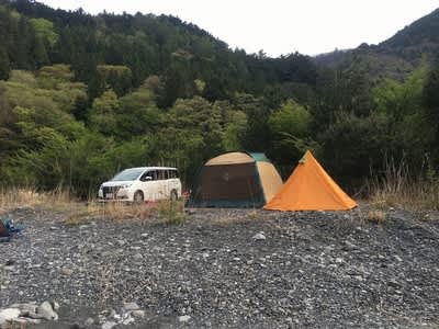 キャンプに行きます。いつものダムの手前の河原。