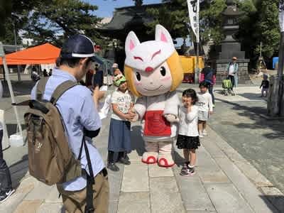 ・男性一人客。キャラクターと写真を撮るために並んでいます。