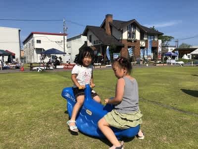 フリーマーケットを出店していた人の娘さんと意気投合して一緒に遊んでます