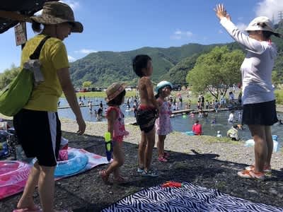 遊ぶ子供たちは水着必須、付き添いの大人も腰までは浸かるのでそれなりの装備を