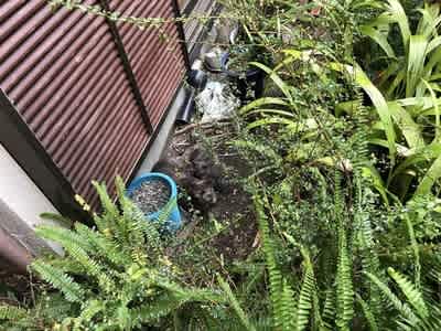 どうしても捕まえたいので探し回って野良猫基地を裏の家で発見する。