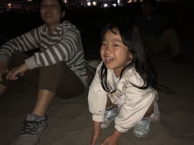 打ち上げ会場の正面ではないのですが、全体を見渡せるし空いているし座って見れるしでなかなかよい感じ