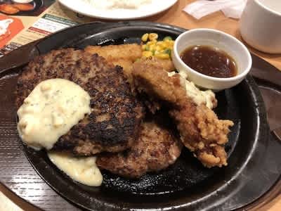 ガストで100円でハンバーグが2倍になるクーポンとやらを利用して大盛ハンバーグとなりました