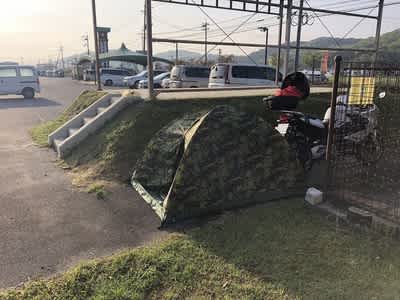 「道の駅 久米の里」で休憩と宿探しをしようとしましたが、ここは隅のほうにテントが張れそう。お願いしたらOKをいただきましたのでここでテント泊とする。