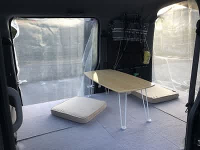 軽ワゴンですので荷台が完全なフラットにならないし、シートの継ぎ目が痛いので寝にくい。