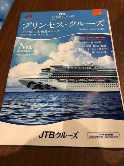 コロナワールドでダイヤモンドプリンセスのパンフレットを読む